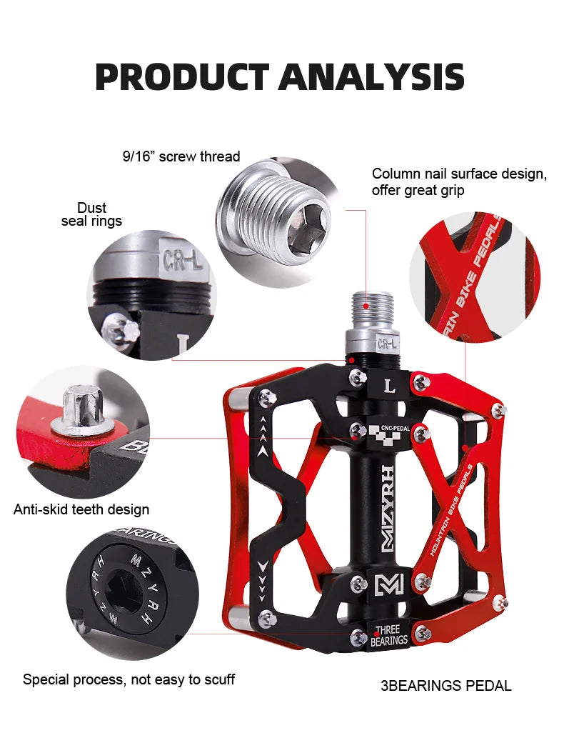 Upgrade your cycling experience with these ultralight aluminium alloy pedals, designed for both road and mountain bikes. With 3 sealed bearings and a CR-Mo steel axle, these pedals offer smooth, durable performance that ensures a long-lasting, reliable ride. Whether you're cruising on roads, trails, or BMX, these pedals are built to handle it all.