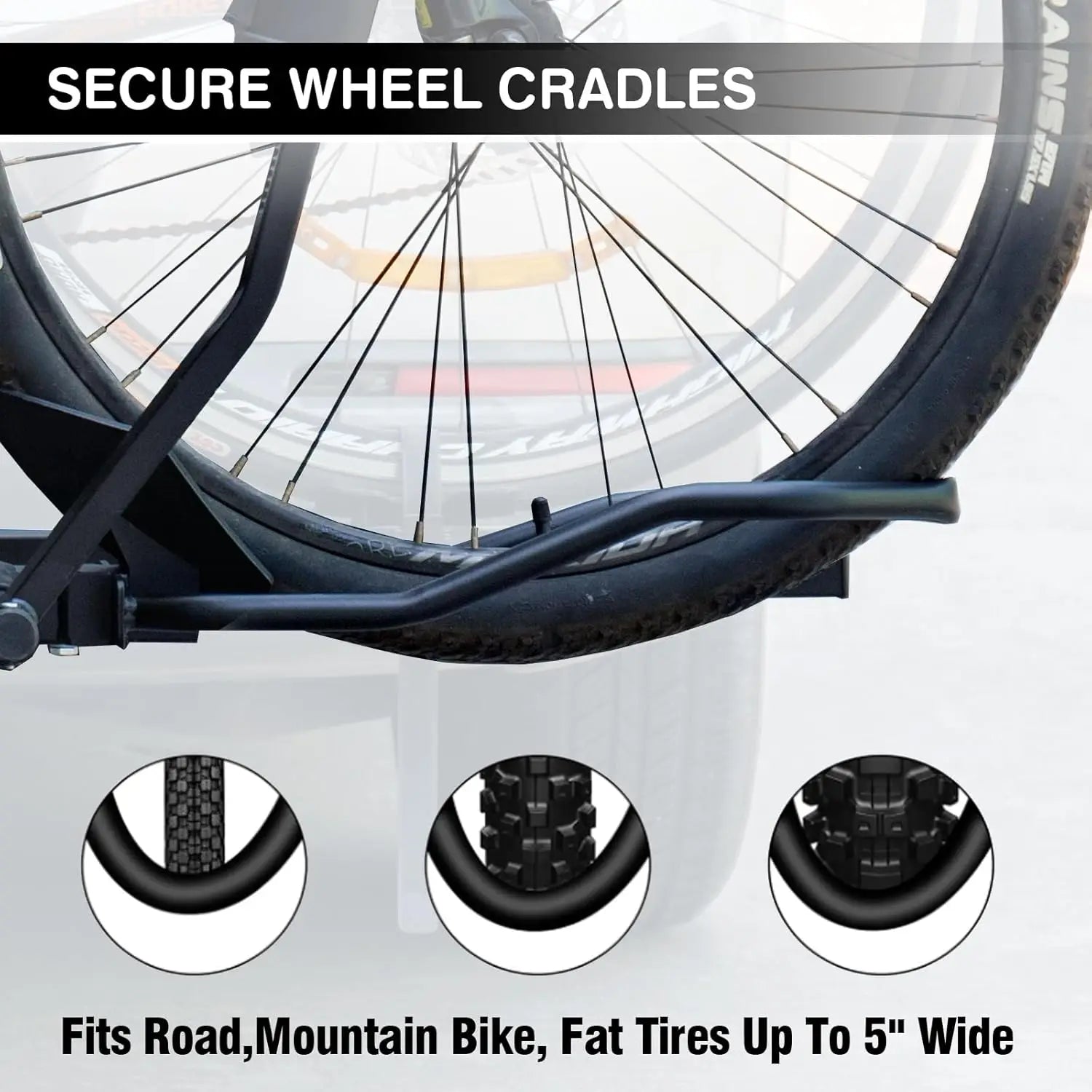 Engineered to support up to 75 lbs per bike, the rack is tested to handle the weight and movement of heavy bikes during transport, ensuring a stable and secure journey.