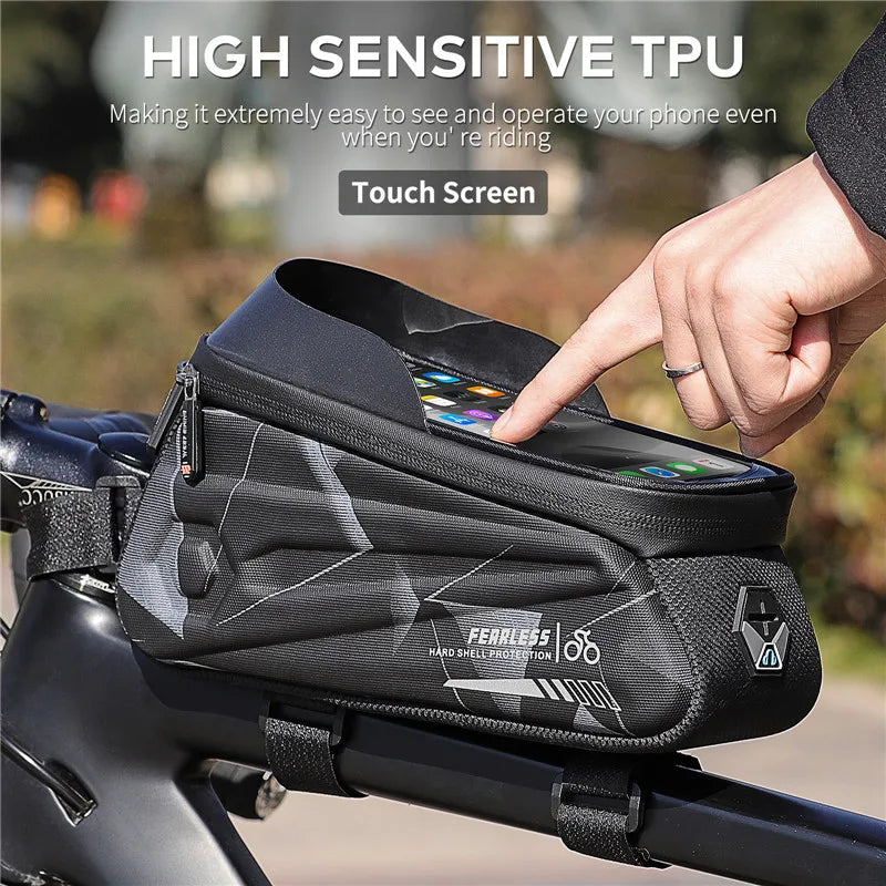 This top tube phone bag features a 7.0-inch high-sensitivity TPU touch screen, allowing you to effortlessly view and operate your phone while riding. Stay connected and in control with a clear and responsive display.