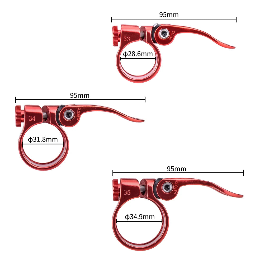 Versatile Compatibility: Available in three sizes (28.6mm, 31.8mm, 34.9mm) to fit various seatpost diameters. This clamp is compatible with carbon, steel, alloy, and titanium frames.
