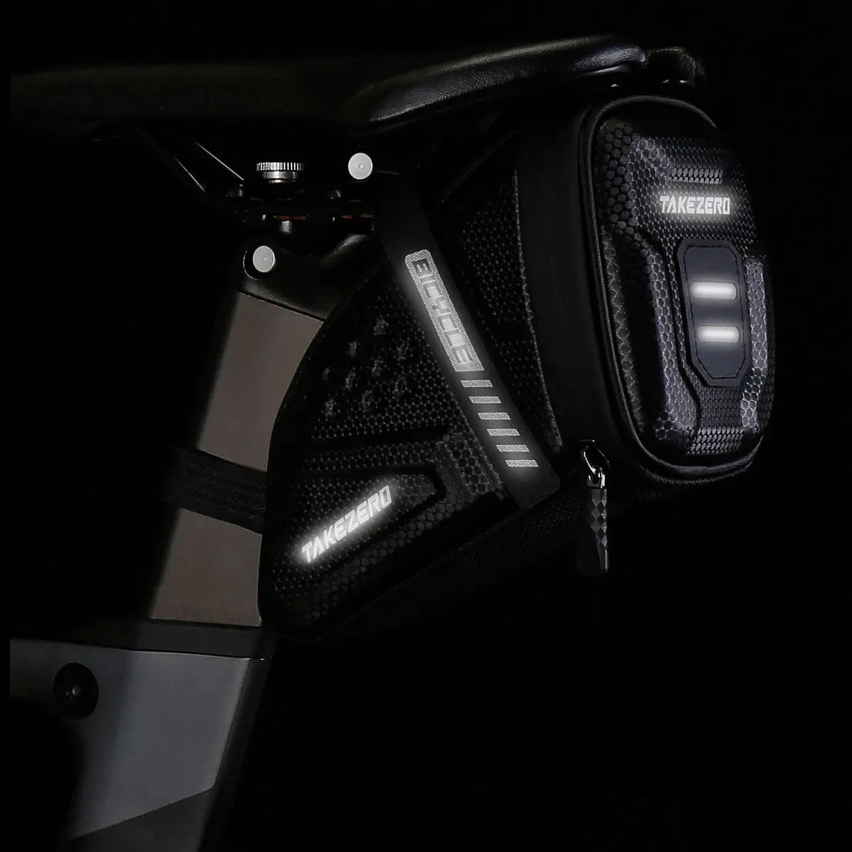 Equipped with a reflective logo, this saddle bag improves visibility and safety during low-light conditions, ensuring you remain seen on the road.