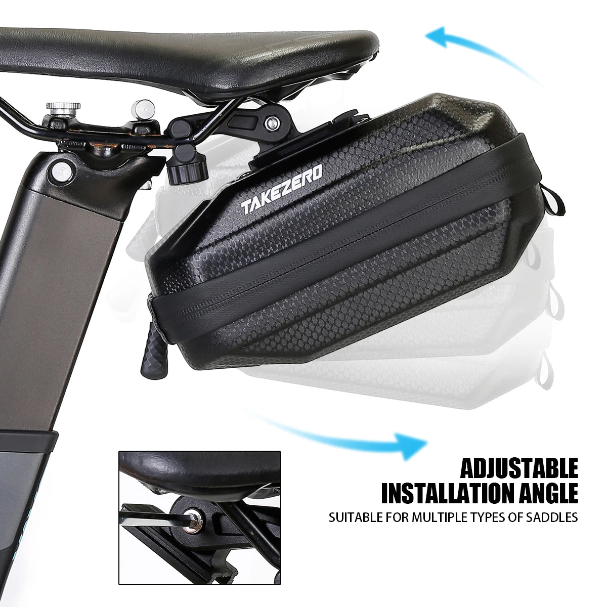 The bag’s installation angle is adjustable, making it compatible with multiple types of saddles. This flexibility ensures a secure and customized fit on various bike models.