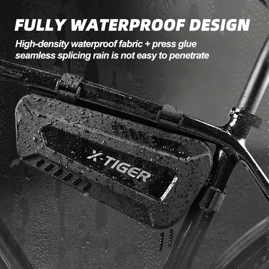 This frame bag features a fully waterproof design with high-density polyester and TPU materials. Seamless splicing and high-frequency welding technology ensure that rain is kept out, protecting your belongings in all weather conditions.