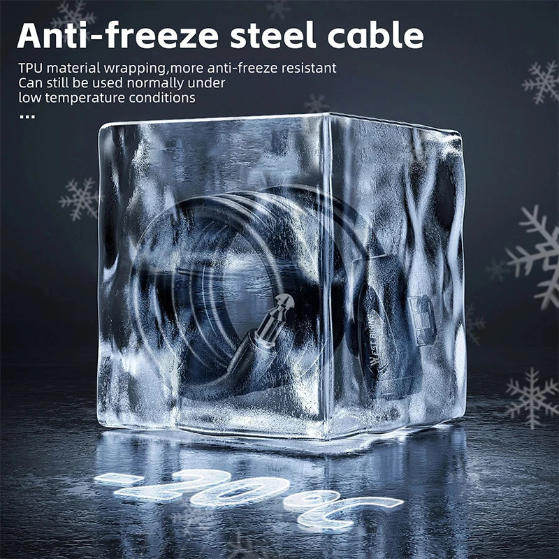Tested under extreme conditions, this lock performs in low temperatures, surpassing standard steel cables in durability. The anti-freeze steel cable ensures reliability in cold climates.