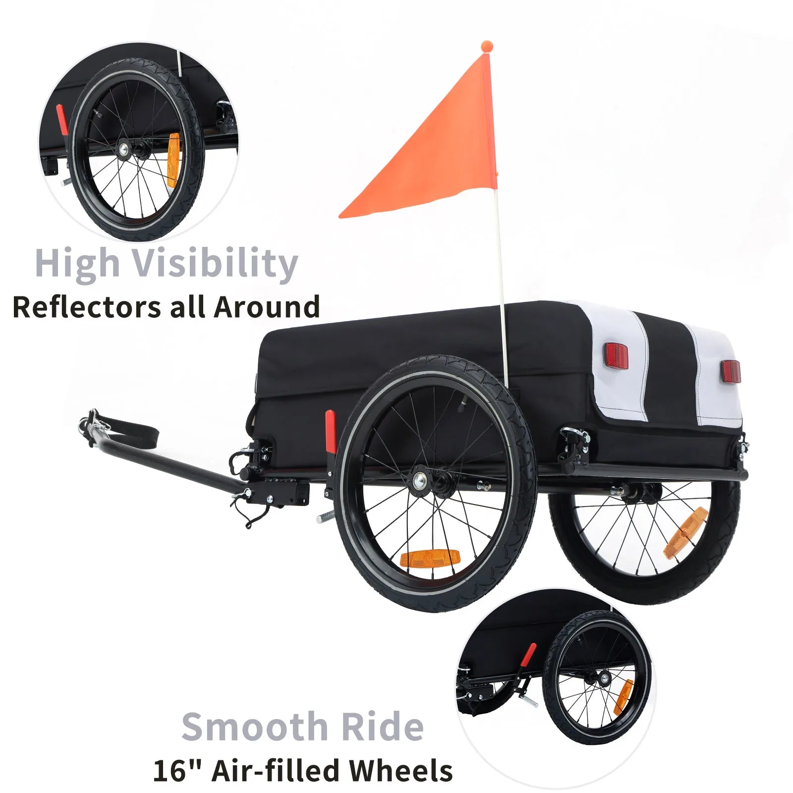 Enhanced Safety: Equipped with orange warning flags and gold spoke reflectors on 16-inch wheels, this trailer enhances road safety. The car valve facilitates easy tire inflation, and additional red reflectors improve visibility during nighttime rides.