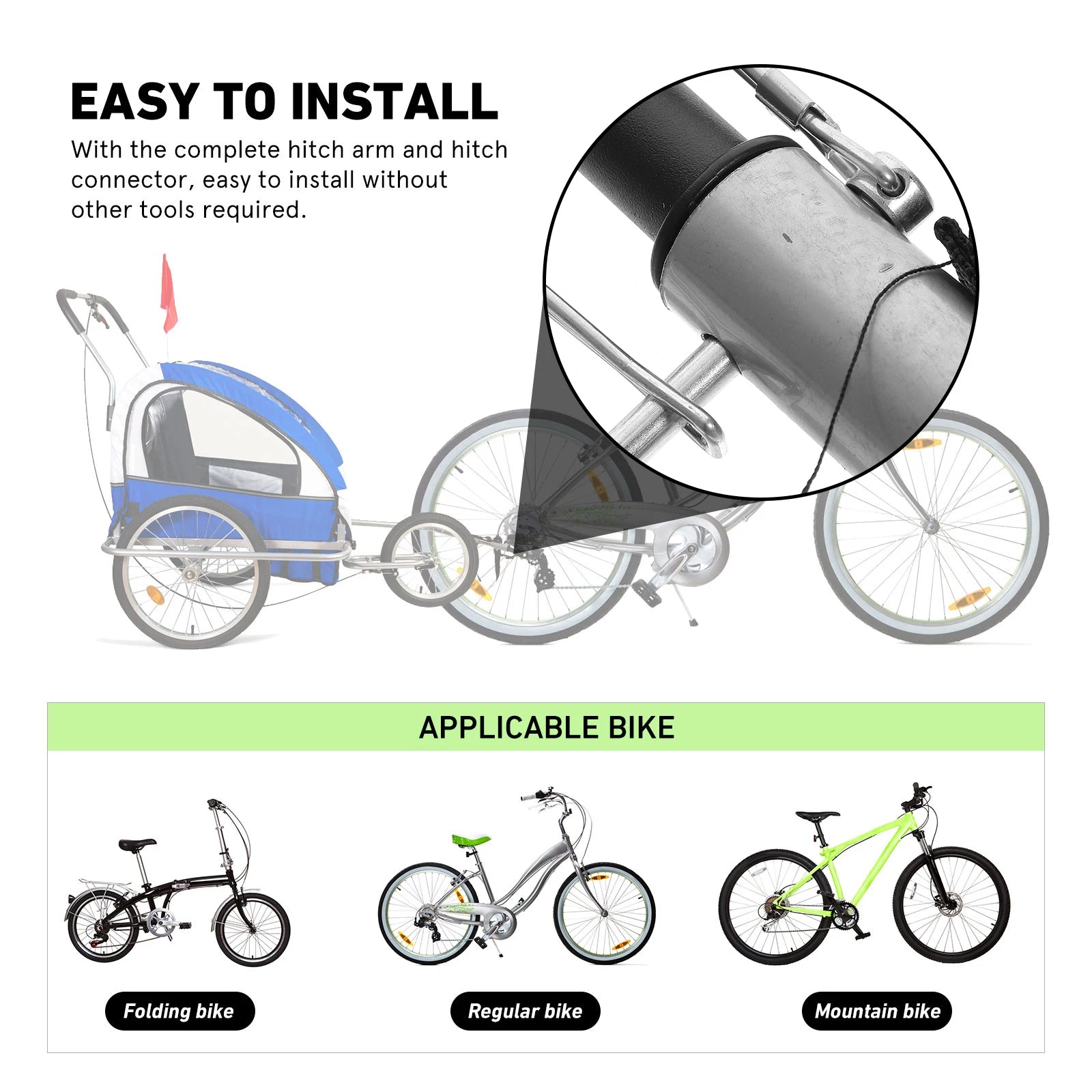 This practical bike trailer hitch offers a secure and sturdy connection for towing your bike trailer, making it ideal for transporting cargo, pets, or other items. The universal design ensures that it can be used with a wide range of bike trailers, from cargo trailers to pet carriers.