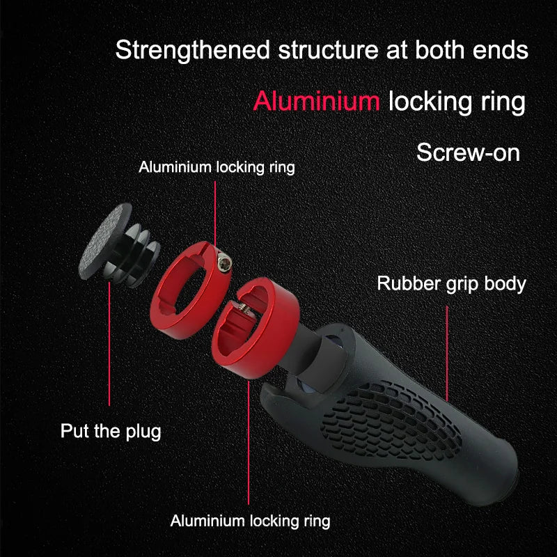 Durable Construction: Reinforced at both ends with an aluminum locking ring and screw-on design, these grips offer a secure and stable fit, preventing slippage during intense rides.