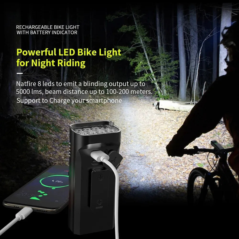 Equipped with a built-in battery ranging from 2400mAh to 10000mAh, this bike light offers extensive runtime—up to 10+ hours on the lowest setting. The USB rechargeable design saves you money and time by eliminating the need for disposable batteries. With a smart IC that prevents overcharging and over-discharging, your battery life is extended for reliable use. Plus, the NKX6 model supports smartphone charging, adding an extra layer of convenience.